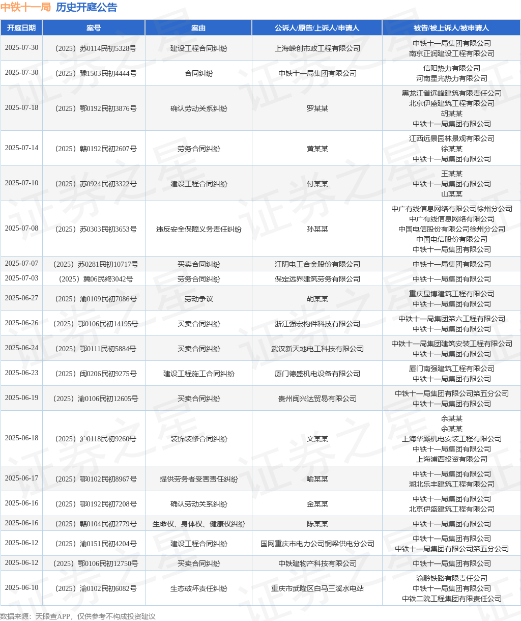 本站消息,根据天眼查APP显示,近日公布了一则中铁十一局集团有限公司作为被告/被上诉人的开庭公告,详细内容如下: